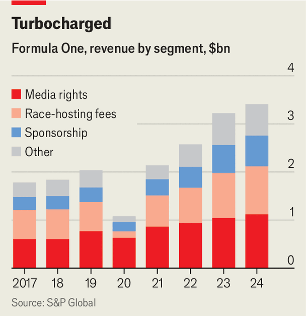 F1 has done a better job of marketing itself on film and television than any other sport. “Drive to Survive”, which goes behind the scenes and behind the wheel at the World Championships, has won the sport legions of fans globally. According to Parrot Analytics, a data firm, the docuseries brought in $290m in revenue for Netflix in 2020-24. (Other sports have since tried to copy the format, with mixed results.) In May Netflix released “F1: The Academy”, which focuses on woman drivers, to cater to the sport’s growing female fanbase.